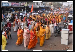 हाथों में भगवा ध्वज और भगवान राम के जयकारे लगाते निकाला श्रीराम का चल समारोह