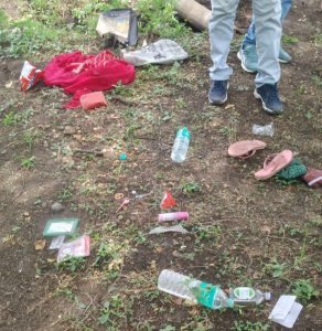 рдкрд╛рд╕ рдЦреЗрдд рдореЗрдВ рдорд╣рд┐рд▓рд╛ рдХреА рдЪрдкреНрдкрд▓, рд╢рд░рд╛рдм рдФрд░ рдкрд╛рдиреА рдХреА рдмреЛрддрд▓, рдбрд┐рд╕реНрдкреЛрдЬрд▓ рдЧрд┐рд▓рд╛рд╕ рдорд┐рд▓реЗ