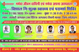सिवानी मालवा । नर्मदा अपना अस्पताल नर्मदापुरम के सौजन्य से सरकारी अस्पताल सिवनी मालवा में विशाल निशुल्क स्वास्थ्य एवं परामर्श शिविर का आयोजन किया जा रहा है ।