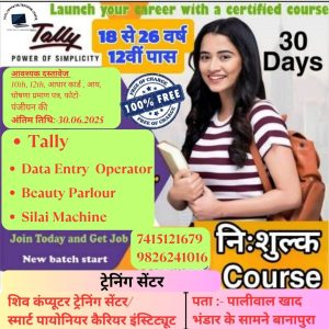 शिवा कंप्यूटर सेंटर की ओर से 18 से 26 वर्ष की आयु वाले 12वीं पास विद्यार्थियों को निशुल्क कंप्यूटर कोर्स कराए जा रहे हैं।